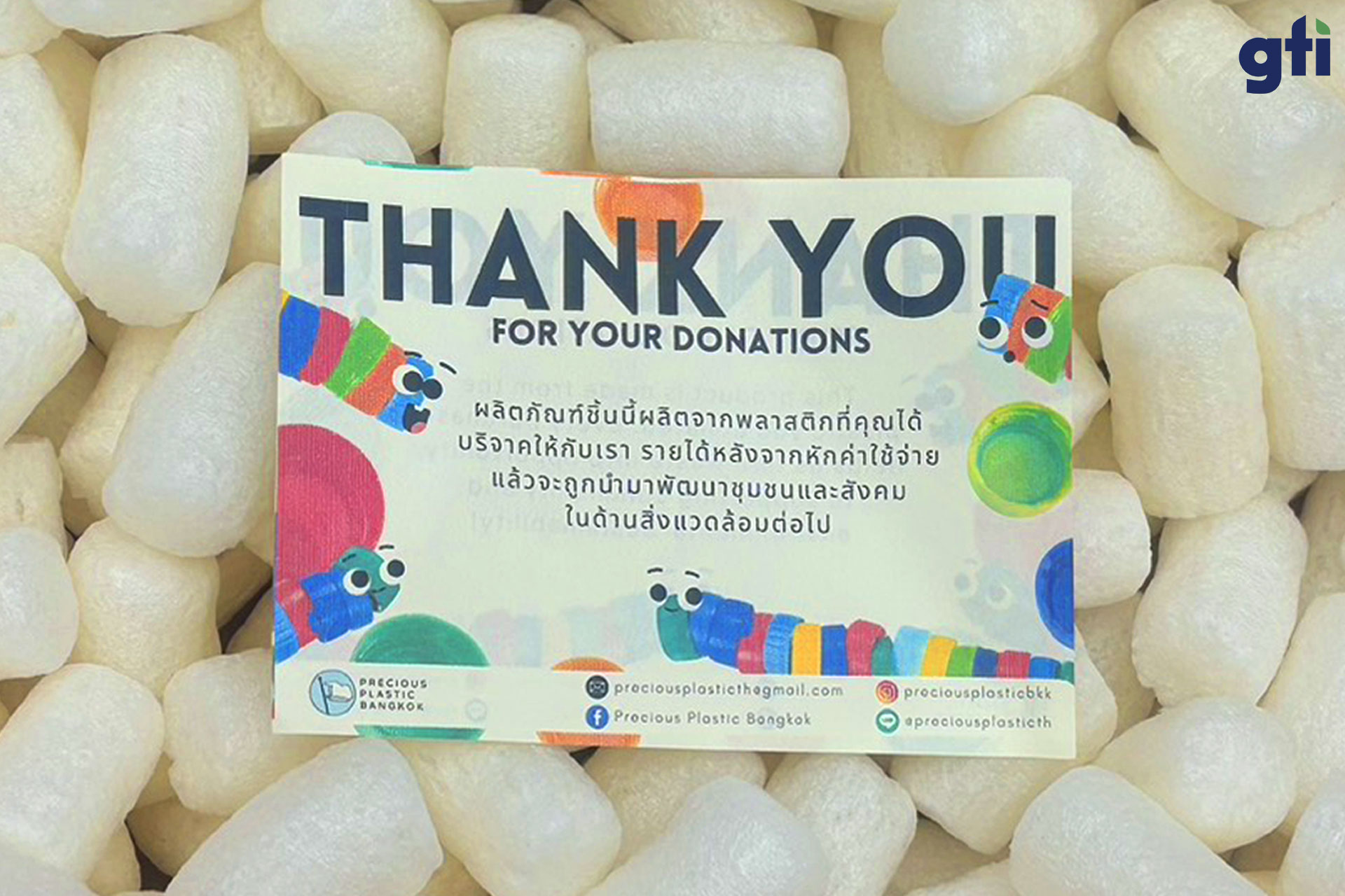จีทีไอ ขอเชิญชวนทุกภาคส่วนร่วมกันคัดแยกและส่งต่อพลาสติกใช้แล้วเข้าสู่กระบวนการรีไซเคิล เพื่อร่วมเป็นส่วนหนึ่งในการลดปริมาณขยะพลาสติกและดูแลสิ่งแวดล้อมอย่างยั่งยืน พร้อมทั้งสนับสนุนการพัฒนาชุมชนผ่านแนวคิดการใช้ทรัพยากรอย่างคุ้มค่า สามารถติดตามกิจกรรมดีๆ และข้อมูลเพิ่มเติมได้ที่ www.preciousplasticth.org